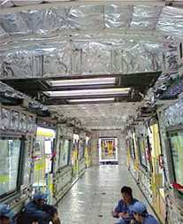 在側(cè)壁和頂棚的應(yīng)用事例中,Greencos綠寰宇多型號(hào)吸聲隔熱泡綿板的低熱能傳導(dǎo)性顯示出高效隔熱的性能。例如,空調(diào)載客車的運(yùn)行費(fèi)用因此可以得到很大程度的降低。